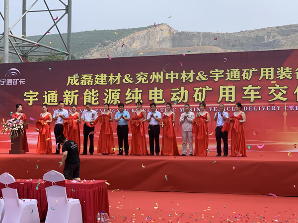 2021年7月17日,成磊建材&兗州中材&宇通礦卡三家企業(yè)代表在成磊建材礦區(qū)舉行隆重的交接儀式,標(biāo)志著兗州中材建設(shè)有限公司礦山開(kāi)采在踐行“綠水青山就是金山銀山”的發(fā)展理念中邁出堅(jiān)實(shí)一步。 出席本次交接儀式的有:禹州市成磊建材有限公司張景奇總經(jīng)理及宋朝陽(yáng)常務(wù)副總經(jīng)理,兗州中材建設(shè)有限公司顏景祥副總經(jīng)理及兗州中材河南省內(nèi)各項(xiàng)目尚曉峰、宋道明、沈磊、劉國(guó)榮及陳茂興經(jīng)理,宇通礦用裝備銷售公司馬勇總經(jīng)理及宇通華北分公司劉寶柱總經(jīng)理,以及禹州市成磊建材有限公司、兗州中材建設(shè)有限公司職工代表。 儀式現(xiàn)場(chǎng)彩旗飄飄,人聲鼎沸,場(chǎng)面氣氛熱烈而隆重。首先,宇通礦用裝備銷售公司總經(jīng)理馬勇先生致詞,馬總介紹了宇通客車響應(yīng)國(guó)家政策在新能源礦車領(lǐng)域擁有的先進(jìn)技術(shù)和取得的市場(chǎng)成就,以及對(duì)兗州中材建設(shè)有限公司、禹州市成磊建材有限公司美好明天的祝福。隨后,兗州中材建設(shè)有限公司副總經(jīng)理顏景祥先生上臺(tái)致詞,顏總強(qiáng)調(diào),兗州中材建設(shè)有限公司作為中央企業(yè)是更具有社會(huì)責(zé)任感的企業(yè),兗州中材在謀求發(fā)展的同時(shí)積極貫徹國(guó)家政策,在礦山施工中率先使用新能源設(shè)備,為構(gòu)建“資源節(jié)約型、環(huán)境友好型”社會(huì)做出應(yīng)有的貢獻(xiàn),承擔(dān)央企責(zé)任,擔(dān)負(fù)央企職責(zé)。最后,禹州市成磊建材有限公司總經(jīng)理張景奇先生致詞,張總肯定了兗州中材建設(shè)有限公司在礦山施工中采用更加安全環(huán)保新型設(shè)備的工作,期望兗州中材建設(shè)有限公司依靠過(guò)硬的施工技藝、新型的生產(chǎn)設(shè)備、高效的管理模式將禹州市成磊建材有限公司礦山在全省乃至全國(guó)范圍內(nèi)樹(shù)立標(biāo)桿,打造成示范性礦山。 致詞完畢,儀式進(jìn)入剪彩環(huán)節(jié),由禹州市成磊建材有限公司張景奇總經(jīng)理、宋朝陽(yáng)常務(wù)副總經(jīng)理,兗州中材建設(shè)有限公司顏景祥副總經(jīng)理、禹州第四分公司尚曉峰經(jīng)理,宇通礦用裝備銷售公司馬勇總經(jīng)理、宇通華北分公司劉寶柱總經(jīng)理共同上臺(tái)剪彩,隨后,由劉寶柱先生代表宇通公司向兗州中材建設(shè)有限公司顏景祥副總經(jīng)理交付金鑰匙,并對(duì)前來(lái)參加儀式的一對(duì)舞獅進(jìn)行點(diǎn)睛,寓意“點(diǎn)石(獅)成金”。 伴隨著臺(tái)上舞獅的激情表演以及空中飄舞的禮花,成磊建材&兗州中材&宇通礦卡交接儀式圓滿結(jié)束。
