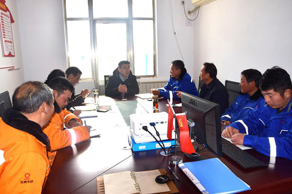 12月17日中材礦山建設(shè)有限公司總經(jīng)理郭正勇、兗州中材建設(shè)有限公司黨委副書記何芳訓(xùn)、中材礦山黨群部長(zhǎng)鄔云齊齊格一行到兗州中材棗莊申豐工程處進(jìn)行工作調(diào)研。  山東申豐水泥集團(tuán)黨委書記陳軍、副總經(jīng)理潘洪強(qiáng)等業(yè)主方領(lǐng)導(dǎo)、兗州中材棗莊申豐工程處經(jīng)理康斌、兗州中材淮海分公司經(jīng)理李勁松等陪同郭總一行視察礦山施工現(xiàn)場(chǎng)。期間,郭總指出,礦山生產(chǎn)智能化是實(shí)現(xiàn)習(xí)總書記綠色、環(huán)保發(fā)展理念的重要方向,應(yīng)積極研究和推進(jìn)。   郭總詳細(xì)詢問了每位職工的工作、學(xué)習(xí)、生活、家庭等情況并給予親切關(guān)懷和熱情鼓勵(lì)。中材礦山黨群部格部長(zhǎng)對(duì)基層黨建工作做了深入了解,對(duì)黨支部線上、線下工作安排提出了建設(shè)性意見。 公司副書記何芳訓(xùn)對(duì)分公司黨建工作做了總結(jié)性發(fā)言并提出了新的目標(biāo)和要求。