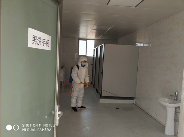 3、未返工人員自我監(jiān)測 四、搞好消毒衛(wèi)生,營造健康環(huán)境 分公司組織專人每日對生活區(qū)辦公室、餐廳、衛(wèi)生間等場所每日消毒兩次,要求員工做好自我防護,勤消毒勤洗手,共同打造抗擊疫情的良好環(huán)境。
