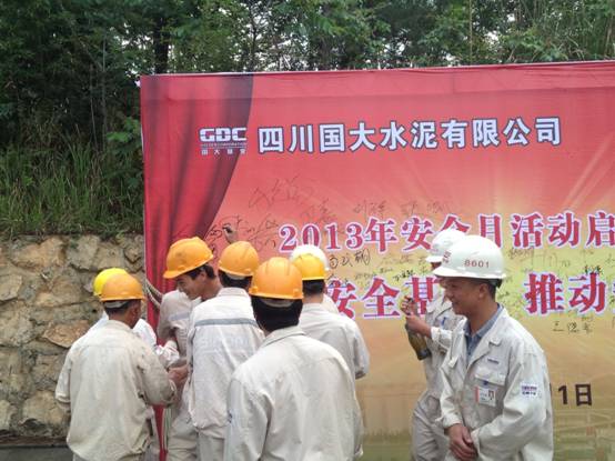 四川國(guó)大水泥舉行安全月啟動(dòng)儀式 6月1日,四川國(guó)大水泥有限公司舉行了以“強(qiáng)化安全基礎(chǔ),推動(dòng)安全發(fā)展”為主題的安全月啟動(dòng)儀式。江油市含增鎮(zhèn)安辦主任唐開(kāi)文到會(huì)并講話。會(huì)議由國(guó)大副總鐘義主持,兗州中材國(guó)大礦山的全體員工也應(yīng)邀參加。 唐開(kāi)文在講話中回顧了過(guò)去幾年國(guó)大水泥對(duì)安全生產(chǎn)作出的巨大貢獻(xiàn),他還表示,礦山現(xiàn)場(chǎng)的安全工作已成為江油市乃至綿陽(yáng)市的一個(gè)安全示范亮點(diǎn),這與兗州中材的積極努力也是密不可分。國(guó)大安全經(jīng)理余德權(quán)在對(duì)安全生產(chǎn)諸方面作出重要指示后,也針對(duì)礦山安全施工提出更高的要求,希望兗州中材能將良好的安全工作習(xí)慣保持下去。會(huì)上,給全體員工發(fā)放了安全手冊(cè)。每位員工在安全月宣傳墻上簽名,這將會(huì)議推上了一個(gè)高潮。會(huì)后,員工們均表示:通過(guò)此次啟動(dòng)儀式,使得安全工作更加深入人心。對(duì)于安全生產(chǎn)的重視,時(shí)刻不敢松懈! 杜國(guó)賓