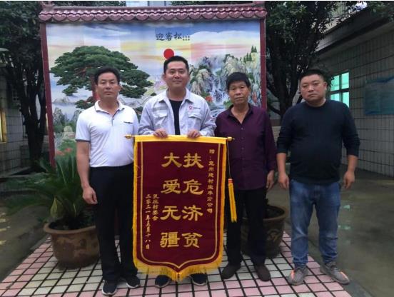 為表達(dá)寶豐分公司多年來對村莊的貢獻(xiàn)和對村民們的情誼,村委會特意送來了“大愛無疆,扶危濟(jì)貧”錦旗,以示感謝!