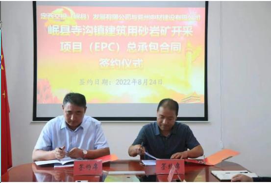| 8月24日上午,定西交投(岷縣)發(fā)展有限公司與兗州中材建設(shè)有限公司簽署岷縣寺溝鎮(zhèn)建筑用砂巖礦開(kāi)采項(xiàng)目(EPC)總承包合作協(xié)議,在岷縣投資建設(shè)綠色、環(huán)保礦石開(kāi)采加工生產(chǎn)線。