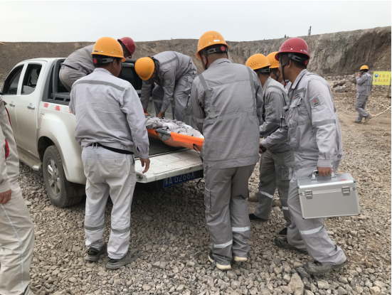上午10時整,演練正式拉開序幕。假設情況是該露天礦山某區(qū)域發(fā)生了邊坡坍塌,造成一名作業(yè)人員腿部受傷被困。接到報告后,項目副經(jīng)理楊宇立即啟動應急預案,迅速組織了由醫(yī)療救護組、應急搶險組、警戒保衛(wèi)組、物資保障組等部門人員組成的應急救援隊伍,攜帶救援裝備,迅速趕赴事故現(xiàn)場。同時,通訊保障組也迅速建立起臨時通訊網(wǎng)絡,確?,F(xiàn)場信息暢通無阻。