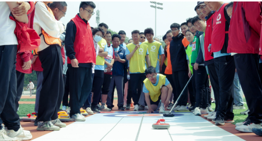 六、旱地冰壺 他們手握球把、單膝跪地、用力一推 他們屏息凝神,歡呼喝彩,加油鼓勁 這一刻,為了勝利,他們都是“我們”