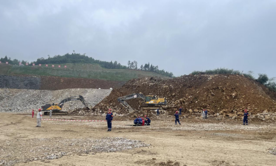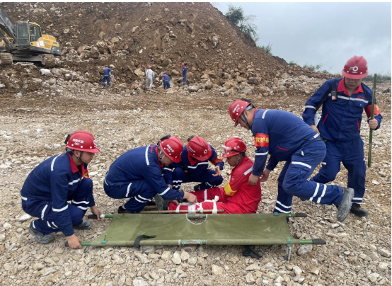 演練現(xiàn)場模擬遇強(qiáng)降雨后邊坡發(fā)生垮塌事故,在接到險情報告后,應(yīng)急指揮部立即啟動應(yīng)急預(yù)案,組織各救援小組趕赴現(xiàn)場
