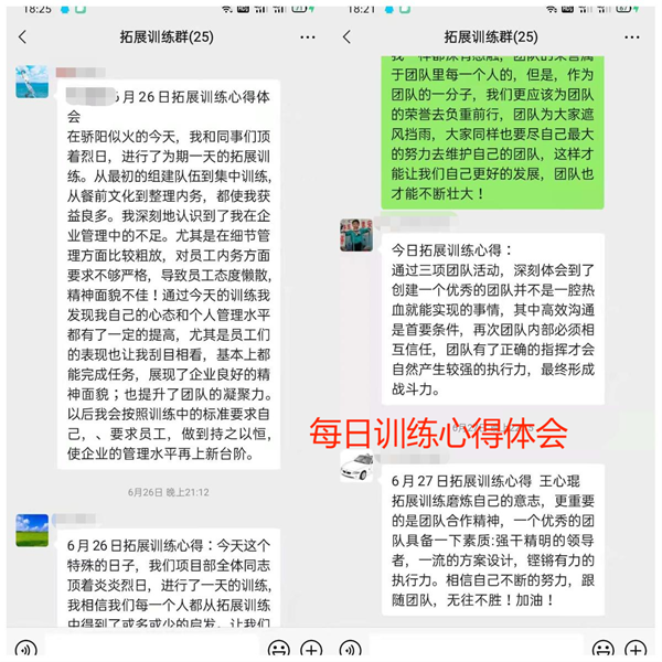 2021年6月26日為迎接中國共產(chǎn)黨成立100周年同時也為了提高員工們的個人素質(zhì)與能力,提升企業(yè)管理水平;兗州中材建設(shè)有限公司白坪分公司開展了為期三天的拓展訓(xùn)練,成立了兗州中材建設(shè)有限公司白坪分公司拓展訓(xùn)練特訓(xùn)營,并邀請中奧企業(yè)管理咨詢有限公司進(jìn)行相關(guān)工作的指導(dǎo),由尖兵教練擔(dān)任特訓(xùn)營教官。 參與此次訓(xùn)練的人員:兗州中材建設(shè)有限公司白坪分公司全體員工。 訓(xùn)練時間:2021年6月26日至6月28日。 此次拓展訓(xùn)練的主要內(nèi)容包括以下三大部分: 一、軍事訓(xùn)練 特訓(xùn)營的第一課便是軍事訓(xùn)練,從列隊到站軍姿,再到稍息立正、跨立、停止間轉(zhuǎn)法,再到最后的齊步行進(jìn)與立定以及跑步行進(jìn)與立定,每一個動作重復(fù)數(shù)十次甚至上百次。 此次訓(xùn)練恰逢中國共產(chǎn)黨成立100周年,軍事訓(xùn)練讓全體人員體會到了我們今天的幸福生活是來之不易的,是無數(shù)革命先烈們拋頭顱、灑熱血才換來的。與先烈們相比,我們訓(xùn)練時承受的這一點點辛苦不值一提。通過軍事訓(xùn)練不僅鍛煉了我們的身體,而且磨煉了我們的意志與心性,同時也提升了我們彼此間的默契與配合程度。