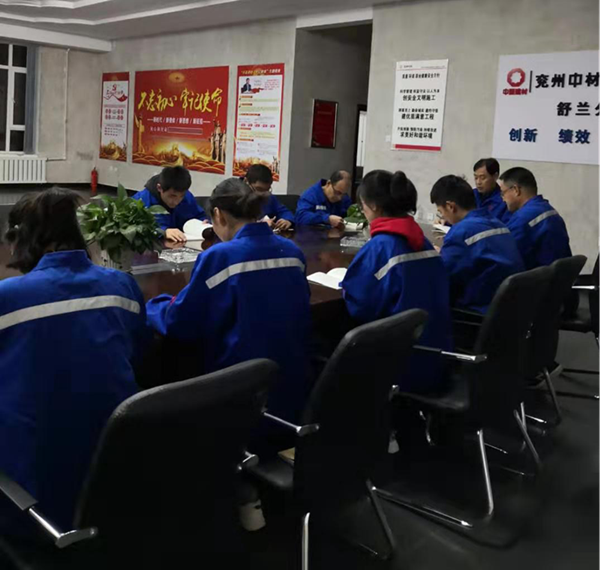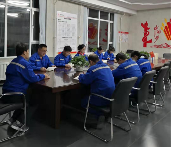 2019年11月24日晚,舒蘭項目部組織開展學習十九屆四中全會精神主題日活動,宋憲軍同志帶領項目部黨員和員工共同學習《中國共產黨第十九屆中央委員會第四次全體會議公報》。