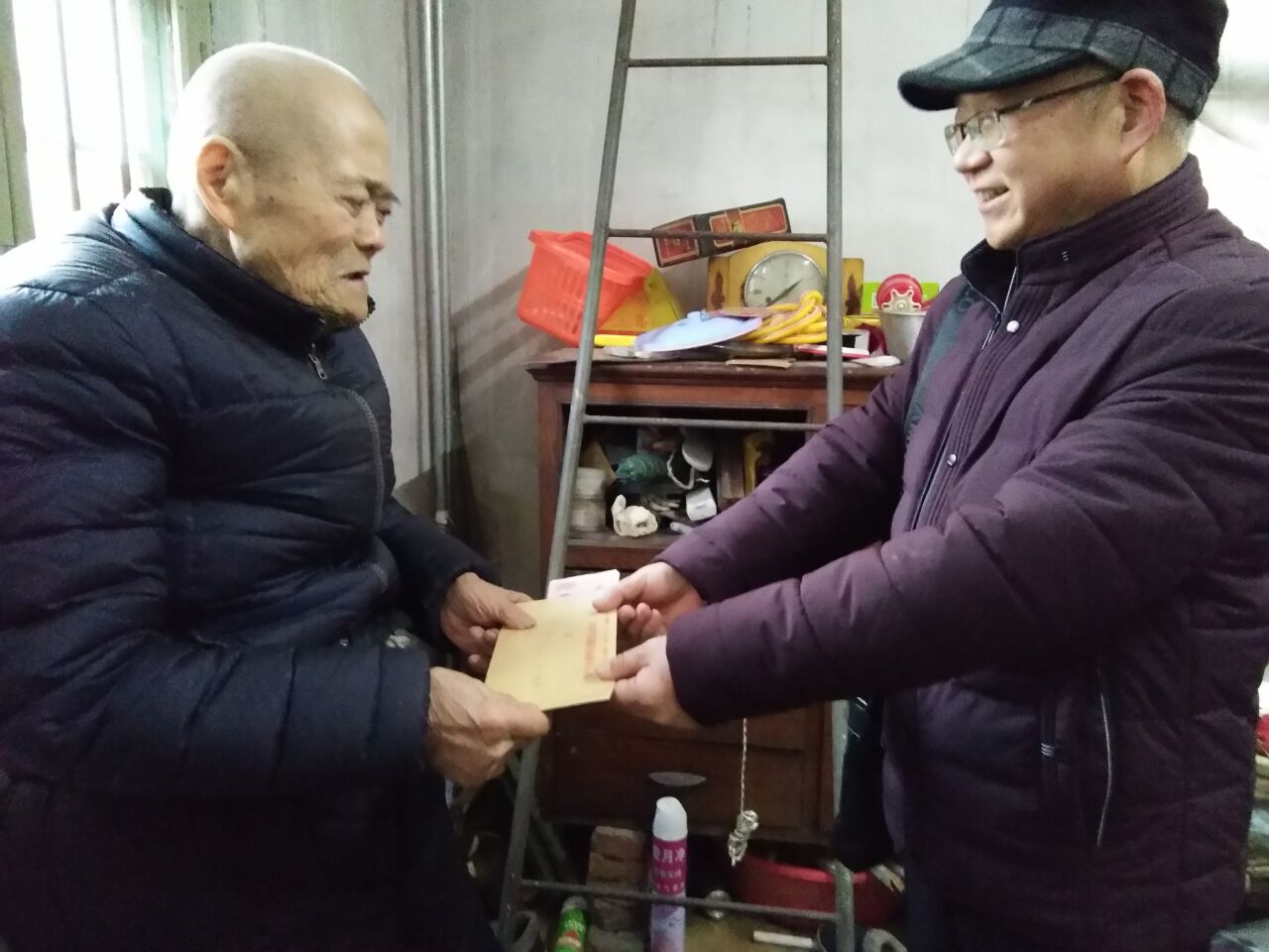 2018年春節(jié)期間走訪慰問活動記實 2018年2月2日下午,天氣晴朗,寒風勁吹,兗州中材建設有限公司黨群部主任姜智彥和共產黨員郭建喜兩人,代表兗州區(qū)黨委、鼓樓街道黨工委、兗州中材建設有限公司黨委到退休黨員金寶銀家走訪慰問。聽到敲門聲,金寶銀老工人問:誰呀!“黨組織派我們看你來了”!我們回答道。金寶銀老工人摸到門把,打開門,激動地說:“謝謝黨組織、謝謝領導來看我,我可高興啦!”金寶銀老工人今年85歲高齡了,常年疾病在身,生活靠女兒照顧。當我們把500元慰問金交給他時,他表示:我不困難,我不要,我不給黨添麻煩。新春佳節(jié)快到了,這是黨組織對您的一點關懷,請您老人家收下吧!在我們的一再勸說下,金寶銀老工人慢慢收下慰問金,感動地滿眼淚花! 兗州中材建設有限公司黨群部 |
