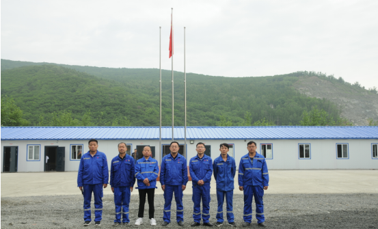 2022年7月1日, 兗州中材和龍分公司在Ⅳ號(hào)礦組辦公生活區(qū)舉行“升國(guó)旗、唱國(guó)歌”儀式,風(fēng)展紅旗如畫,砥礪初心如磐。