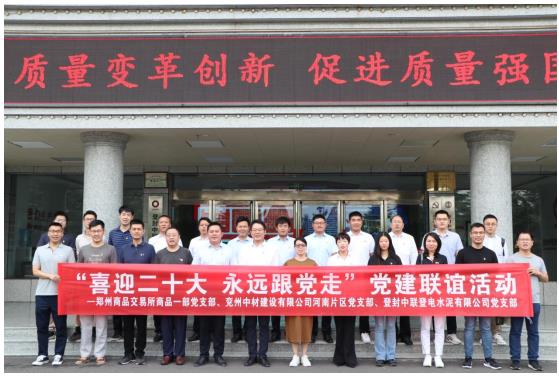為進一步深化黨建聯(lián)建共建,凝聚發(fā)展合力,9月17日上午,河南片區(qū)黨支部代表赴登封中聯(lián)登電水泥有限公司與登封中聯(lián)登電水泥黨支部、鄭州商品交易所商品一部黨支部開展黨建聯(lián)誼活動。