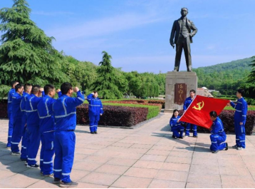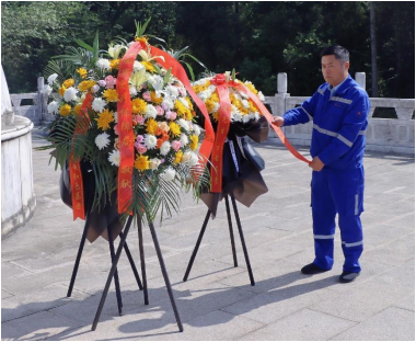 驚雷浮雕、陳獨(dú)秀銅像、新青年碑刻......走過柏林墓道,來到陳獨(dú)秀先生的墓前,項(xiàng)目執(zhí)行經(jīng)理張作鋼同志代表公司敬獻(xiàn)花圈,帶領(lǐng)全體黨員和青年同志,懷著無比崇高的敬意,恭敬地向墓碑三鞠躬,用行動表達(dá)對先生的敬仰之情。