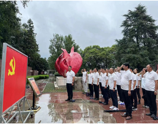 29日,共同前往紅色大別山,在鄂豫皖蘇區(qū)首府革命烈士紀念館中,以傾盆大雨寄哀思,拾級而上,同志們身著白色上衣整齊列隊肅立在革命烈士紀念碑廣場,面朝莊嚴肅穆的紀念碑,在宋道明同志的帶領下,全體低頭默哀,沉痛哀悼英勇犧牲的烈士,并共同向烈士敬獻花籃,同志們莊重的舉起右手,面對鮮紅的黨旗,“我志愿加入中國共產(chǎn)黨,擁護黨的綱領……永不叛黨。”在鏗鏘有力的誓詞中,重溫入黨初心,同志們初心受到洗禮,理想信念更加堅定。