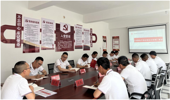 首先,西南片區(qū)黨支部召開支部黨員大會,集中學(xué)習(xí)《中國共產(chǎn)黨紀(jì)律處分條例(2024年)》新修訂版,就修訂的主要內(nèi)容和鮮明特征、對推動全面從嚴(yán)治黨的意義、抓好貫徹落實(shí)等方面做出詳細(xì)解讀,并強(qiáng)調(diào)在項(xiàng)目經(jīng)營中,對規(guī)章制度和廉潔紀(jì)律要嚴(yán)格遵守,著重提出對“高壓線”、“紅線”問題不可觸犯。